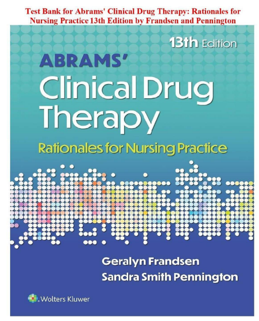 Test Bank for Abrams’ Clinical Drug Therapy: Rationales for Nursing Practice 13th Edition by Frandsen and Pennington