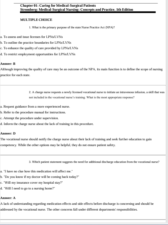 Your future patients deserve a competent, caring practical nurse. This test bank helps you become that professional who provides safe, effective medical-surgical nursing care.