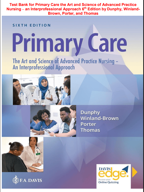 Test Bank for Primary Care the Art and Science of Advanced Practice Nursing – an Interprofessional Approach 6th Edition by Dunphy, WinlandBrown, Porter, and Thomas